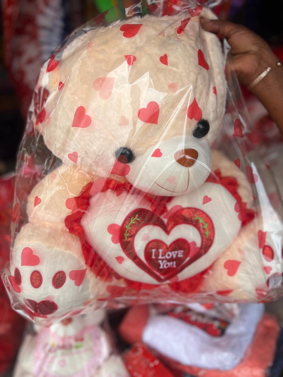 Cuddly plush teddy bear with heart-shaped decoration, perfect for Valentine's Day gifts. Soft and adorable, it expresses love and affection.
