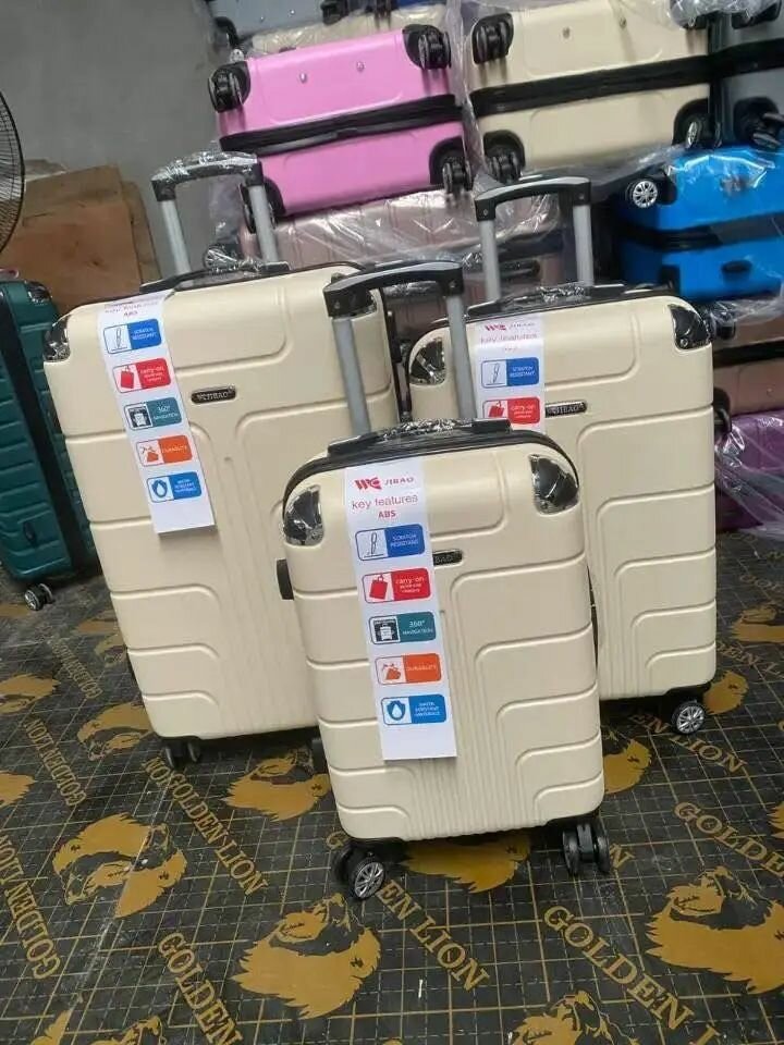 Valise rigide Goldenn de couleur beige pour un voyage élégant. Robuste et pratique avec roulettes et poignée télescopique. Différentes tailles disponibles