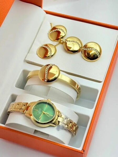 Ensemble Montre et Bijoux Doré Luxueux