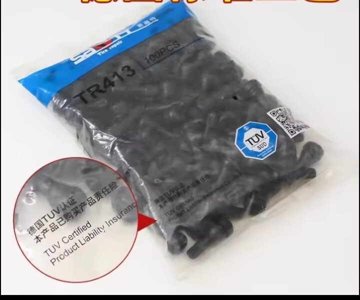 Ensemble de 100 valves TR413/TR414 en caoutchouc, idéal pour pneus de véhicules. Installation facile et durable, certifiées TÜV pour la qualité. Parfait pour garages et professionnels de l'automobile.