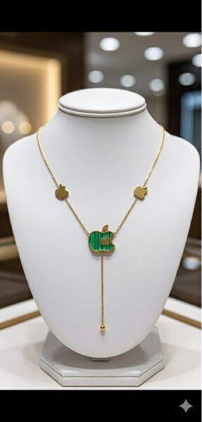 Van Cleef vert ( bracelet, chaine et boucles d'oreilles). Ces bijoux sont parfaits pour des occasions spéciales, apporteront une touche d'élégance à votre tenue. Un choix idéal pour des soirées glamour ou comme cadeau raffiné.