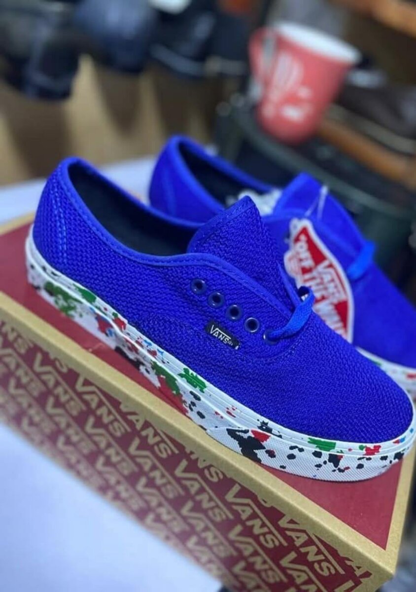 Découvrez les sneakers Vans en bleu vif avec une semelle éclaboussée de couleurs. Parfaites pour ajouter une touche de style unique à votre tenue quotidienne. Confortables et durables, ces chaussures sont idéales pour les sorties décontractées et les occasions spéciales. Faites-vous remarquer et exprimez votre personnalité avec ces baskets tendance!