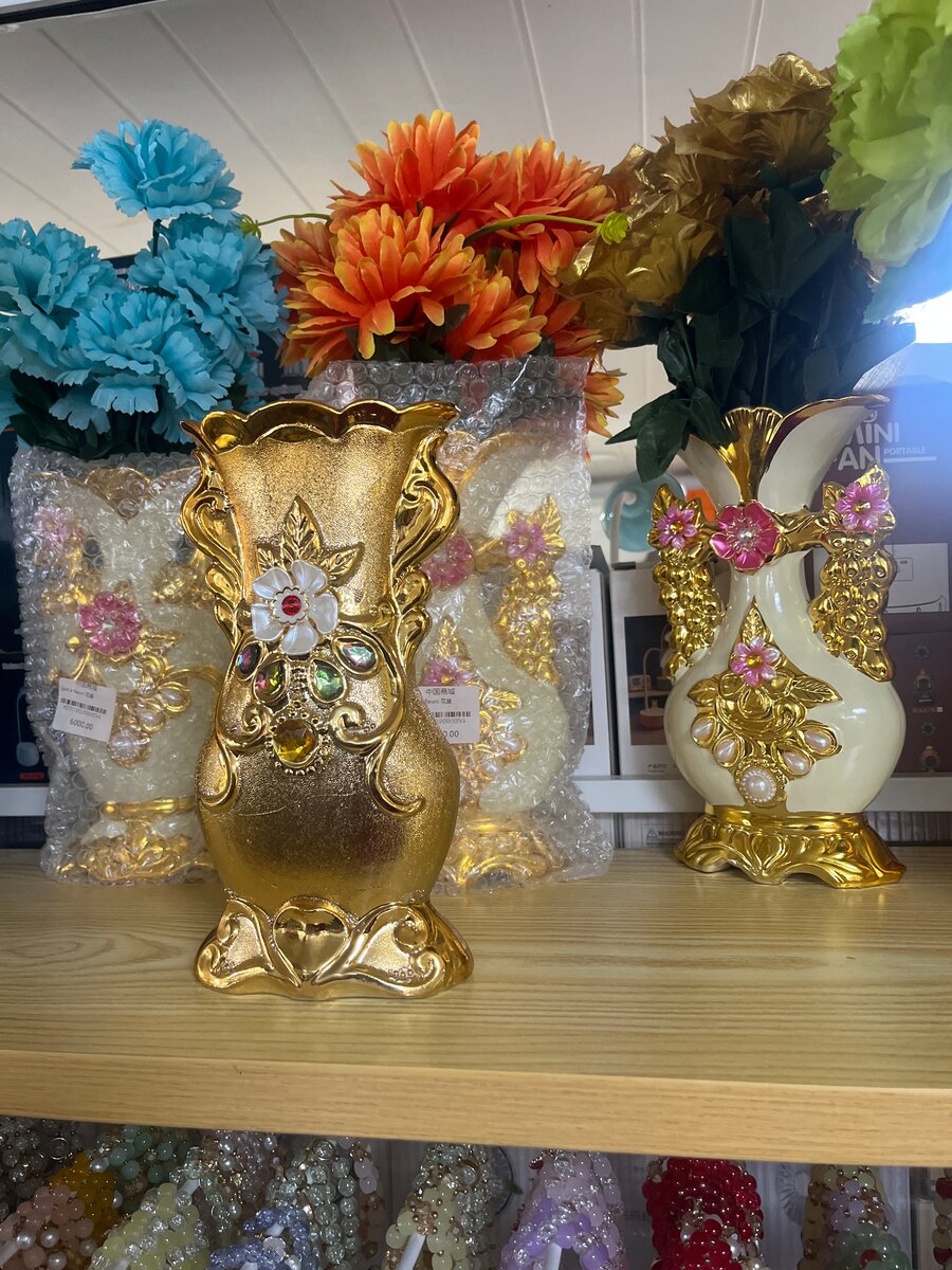 Ajoutez une touche d'élégance à votre intérieur avec ce vase décoratif en céramique. Idéal pour sublimer vos compositions florales avec son design doré et orné de pierres précieuses, c'est le choix parfait pour un salon ou une salle de réception. Parfait pour les fleurs fraîches ou artificielles.