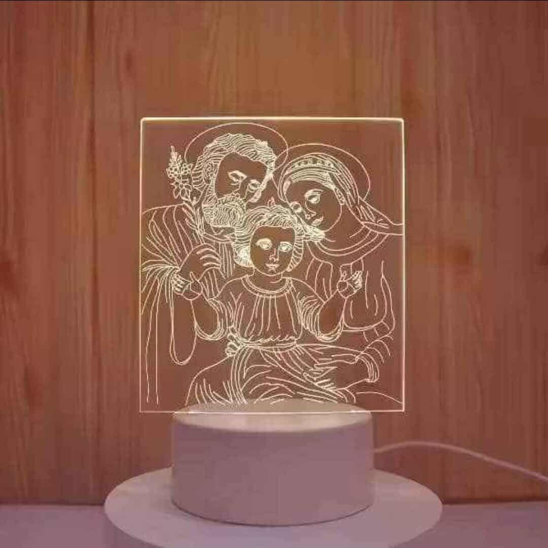 Illuminez votre espace avec cette veilleuse à LED représentant la Sainte Famille. Idéale pour créer une ambiance paisible, cette lampe est parfaite pour le salon ou la chambre à coucher. Son design artistique en fait également un superbe cadeau.