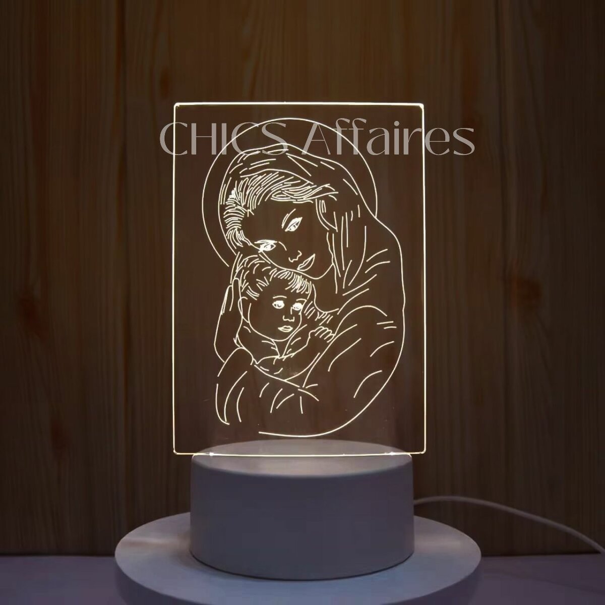 Veilleuse LED avec effigie de la Vierge Marie, idéale pour une ambiance apaisante. Parfaite pour la chambre ou le salon.