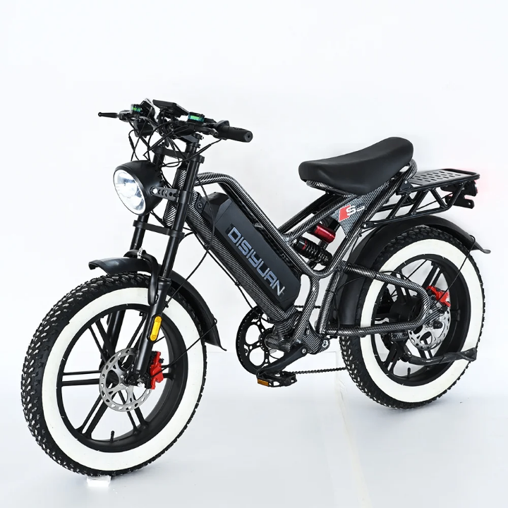 Découvrez le vélo électrique DISIYUAN, conçu pour les aventures tout-terrain. Équipé de pneus larges et robustes, il offre une stabilité et une adhérence exceptionnelles sur tous les types de terrain. Son moteur puissant et sa batterie performante vous permettent de parcourir de longues distances en toute tranquillité. Parfait pour les amateurs de randonnée et les déplacements urbains.