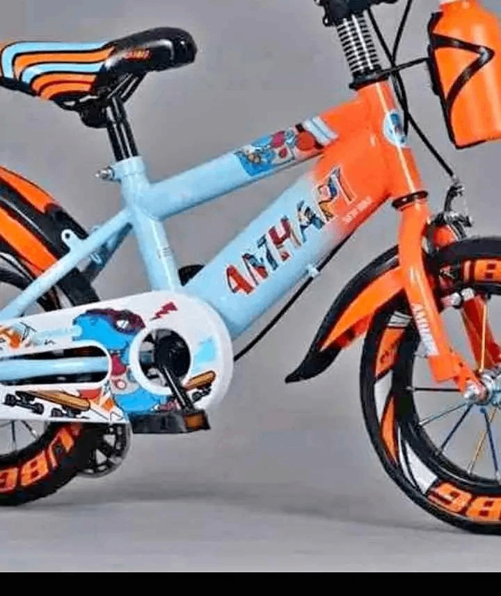 Découvrez le vélo enfant ANHARI bleu et orange, conçu pour les jeunes aventuriers ! Léger et robuste, il est idéal pour les balades en plein air.