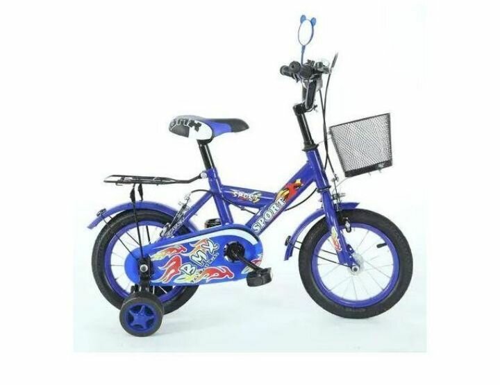 Vélo enfant Storm 16 pouces bleu avec roues stabilisatrices et panier avant. Idéal pour les débutants, conçu pour les jeunes aventuriers.