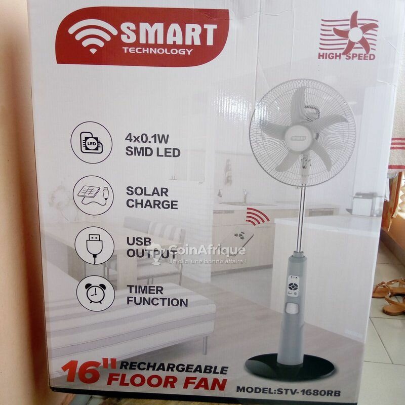 Découvrez le ventilateur de sol rechargeable SMART TECHNOLOGY, équipé de 4 LED SMD, charge solaire, fonction minuterie et sortie USB. Idéal pour une utilisation intérieure, il offre jusqu'à 16 heures d'autonomie. Léger et élégant, il est parfait pour les pièces de vie.