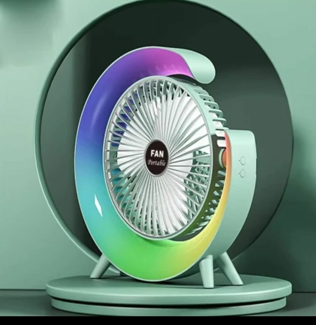 Profitez d'une brise puissante avec ce ventilateur portable élégant doté de lumières LED colorées pour une ambiance parfaite. Idéal pour la maison ou le bureau, il offre une circulation d'air optimale avec réglage à 180°.