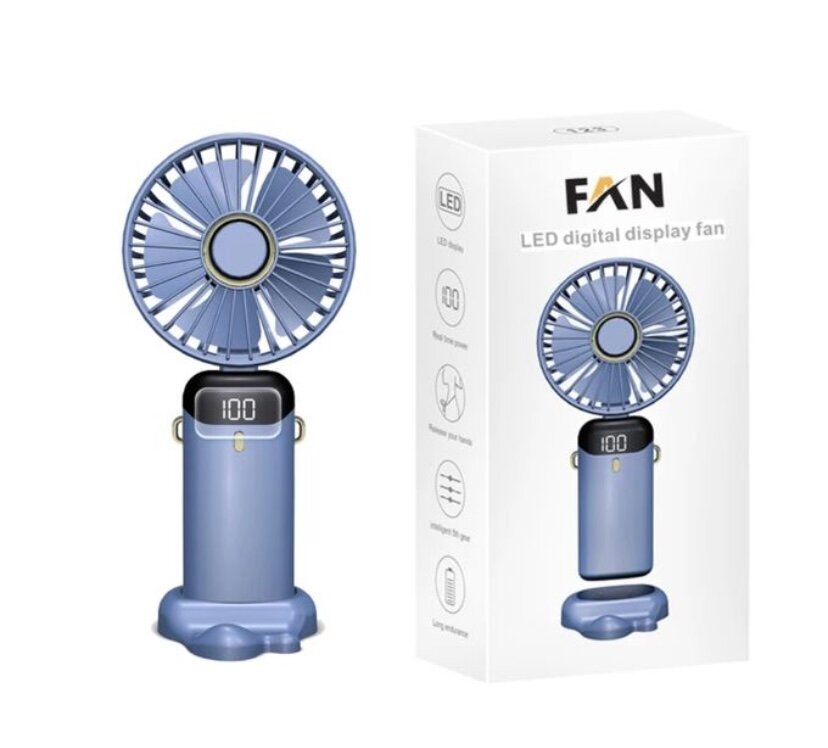 Ventilateur portable USB avec affichage numérique LED pour une utilisation facile. Design compact idéal pour le bureau ou les voyages. Recharge via câble Type-C inclus. Profitez d'une brise fraîche où que vous soyez avec style et confort.