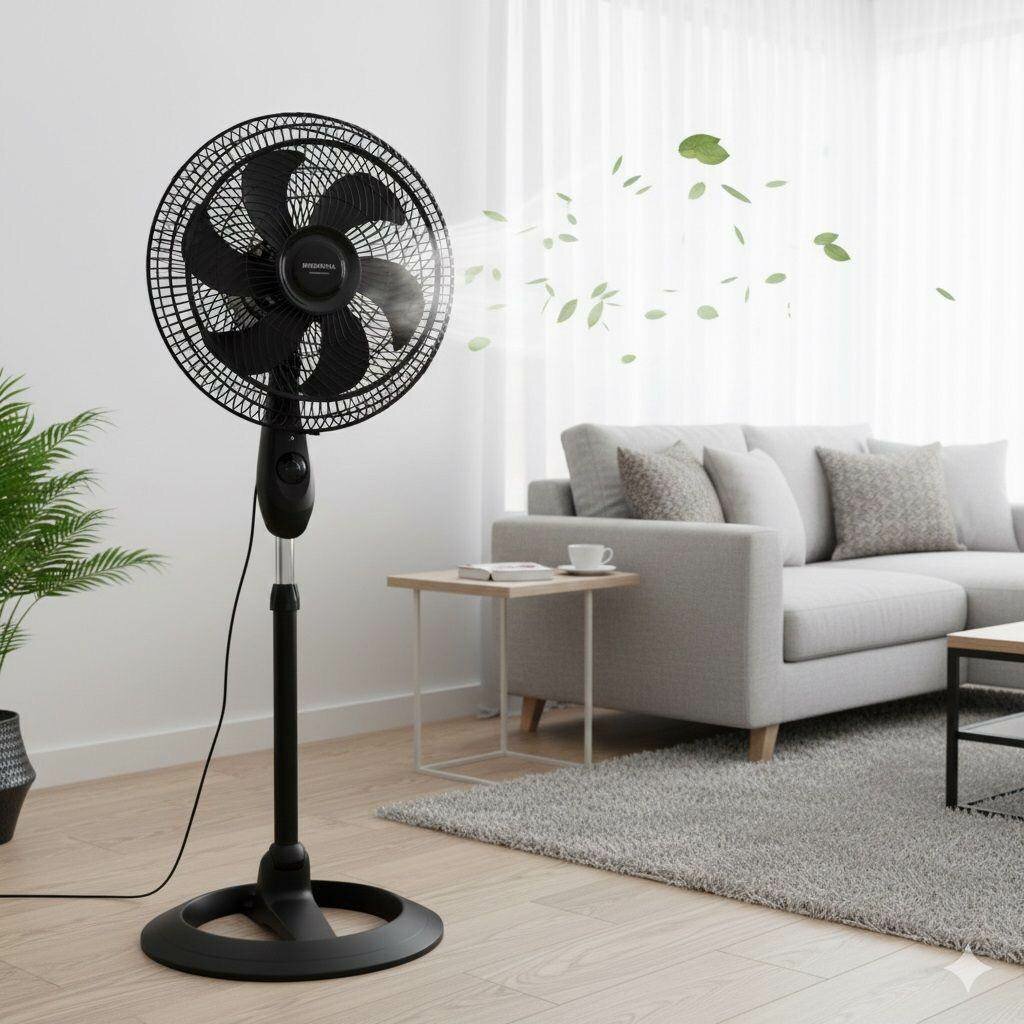 Découvrez notre ventilateur sur pied noir, idéal pour une maison confortable. Léger et réglable, il offre une brise fraîche partout dans la pièce. Parfait pour les chaudes journées d'été.
