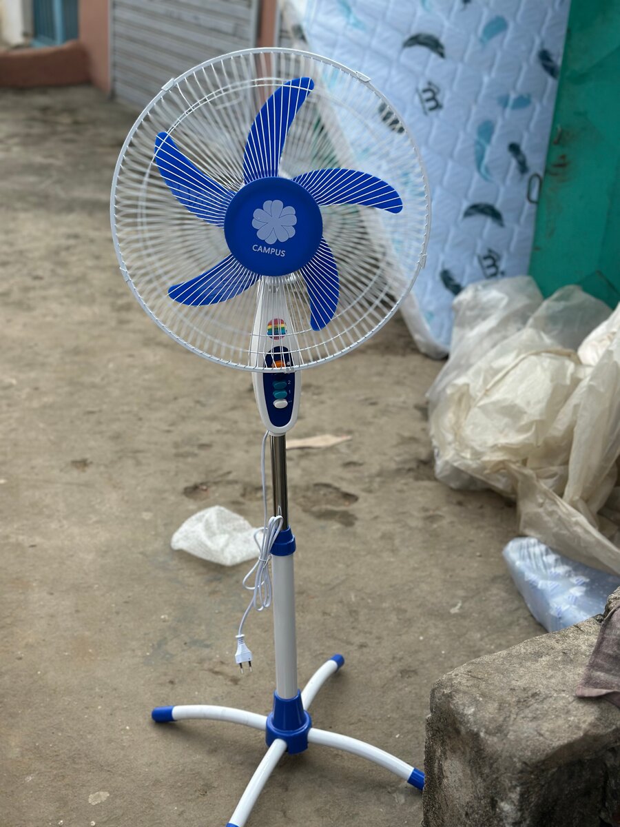 Profitez d'un air frais avec ce ventilateur sur pied réglable. Parfait pour rafraîchir votre maison ou bureau, ce ventilateur est doté de pales robustes pour une circulation optimale de l'air. Son design moderne et sa couleur bleue s'intègrent harmonieusement dans tout intérieur. Idéal pour les journées chaudes, il deviendra votre allié numéro un.