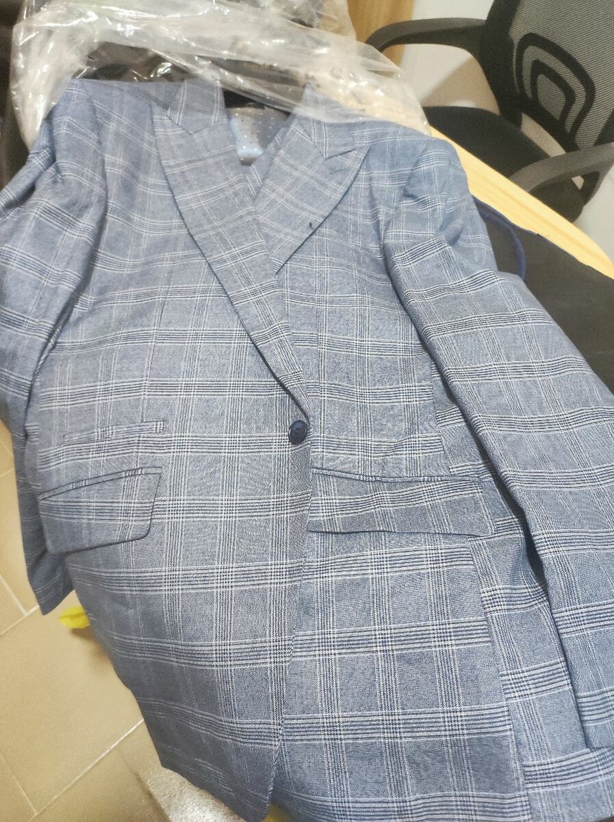 Découvrez cette veste de costume grise élégante à carreaux de la marque BLACK SMART. Veste croisée 3 pièces Conçue pour les hommes, elle arbore un style moderne avec sa coupe ajustée et ses détails soignés. Parfaite pour les occasions spéciales ou professionnelles. Taille 58