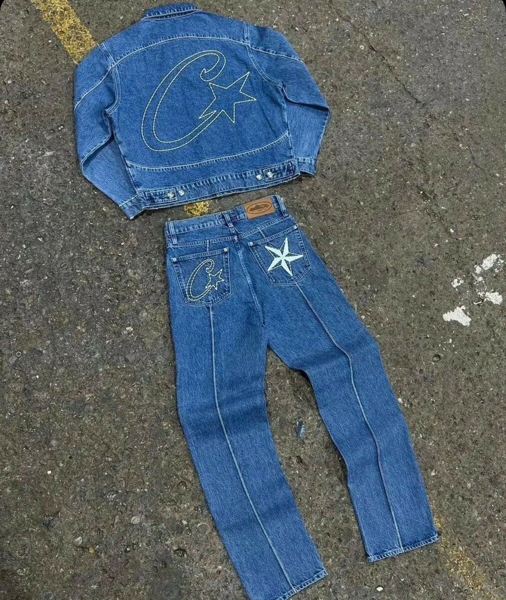 Découvrez cet ensemble tendance composé d'une veste en jean et d'un jean assorti, parfait pour un look décontracté. Confectionné dans un denim de haute qualité, cet ensemble arbore des motifs brodés uniques qui ajoutent une touche de style. Idéal pour les sorties entre amis ou les week-ends décontractés, cet ensemble allie confort et élégance en toute simplicité. Adoptez un look effortlessly cool avec cet ensemble denim indispensable.