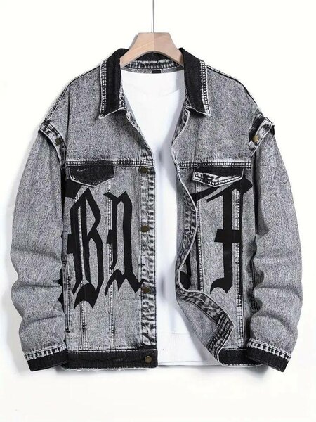 Veste en jean pour homme avec motif imprimé. Confortable et élégante, idéale pour les occasions décontractées. Disponible en plusieurs coloris.