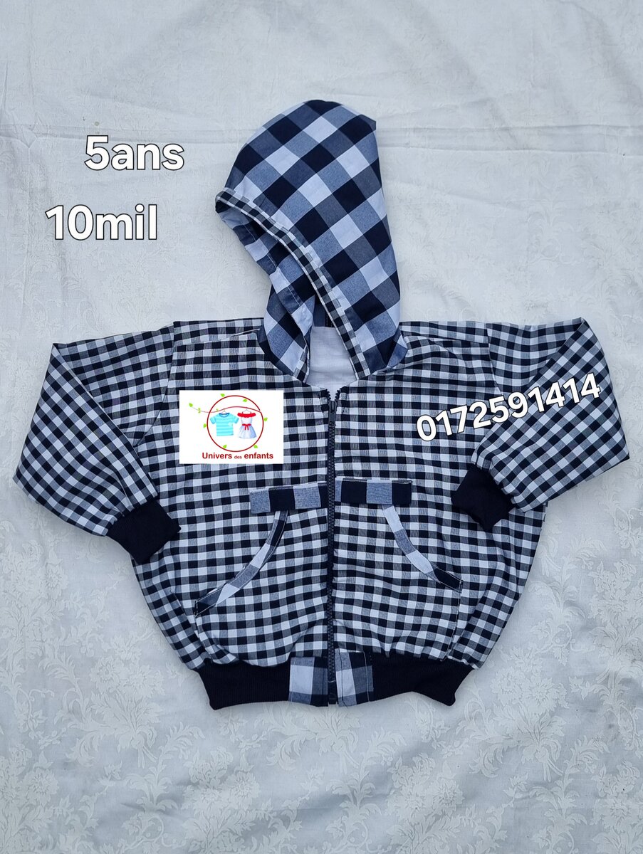 Veste à capuche pour enfant, motif à carreaux classiques. Idéale pour un style décontracté et confortable en toutes saisons. Parfaite pour les sorties et le quotidien des petits explorateurs de 5 ans.