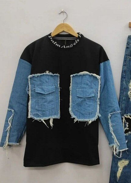 Ensemble tendance de veste et jean détruits en denim bleu. Parfait pour un look urbain audacieux et moderne. Confort et style garantis.