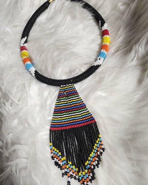 Découvrez cette magnifique veste perlée avec des motifs en bleu et noir, ornée de franges élégantes. Idéale pour ajouter une touche unique et stylée à votre garde-robe. Parfaite pour des occasions spéciales ou pour se démarquer au quotidien. Fabriquée sur commande.