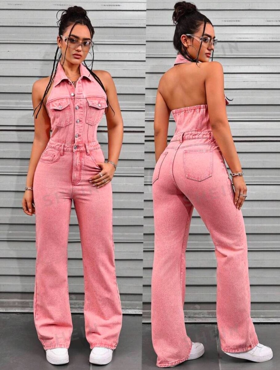 Combinaison short en jeans bleu