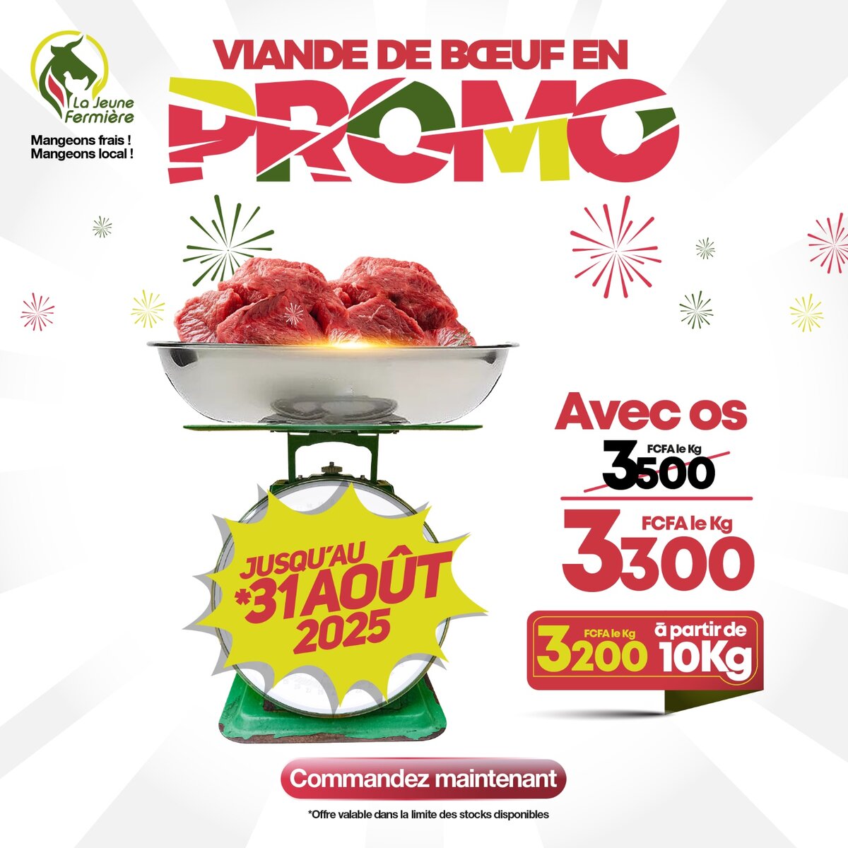 Viande de boeuf fraîche avec os à prix réduit. Profitez dès maintenant de cette offre exceptionnelle jusqu'au 31 août 2025. Idéale pour grillades et plats mijotés.