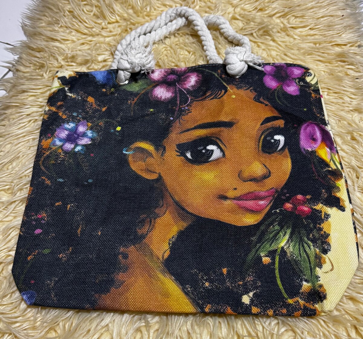 Discover this vibrant art tote bag, perfect for beach days or casual outings. Its vivid, artistic design makes it a standout accessory. Crafted for style and durability with strong rope handles, this bag is ideal for carrying essentials in a fashionable way. Enhance your accessory collection with this unique, must-have tote.