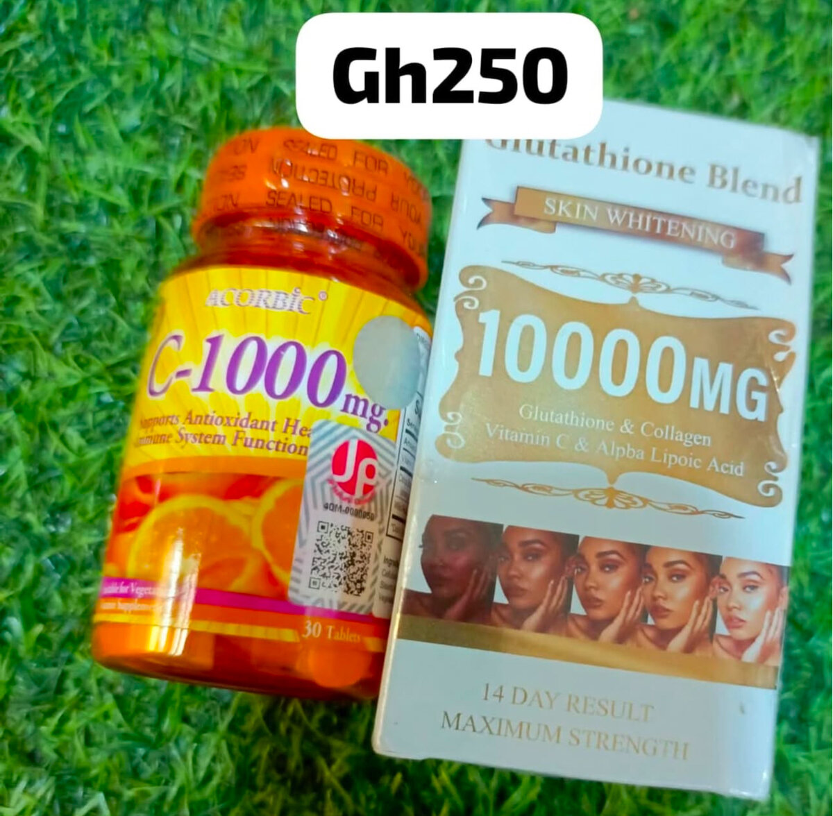 Skin Whitening + Gluta 900000mg+Vitamin C 1000mg set