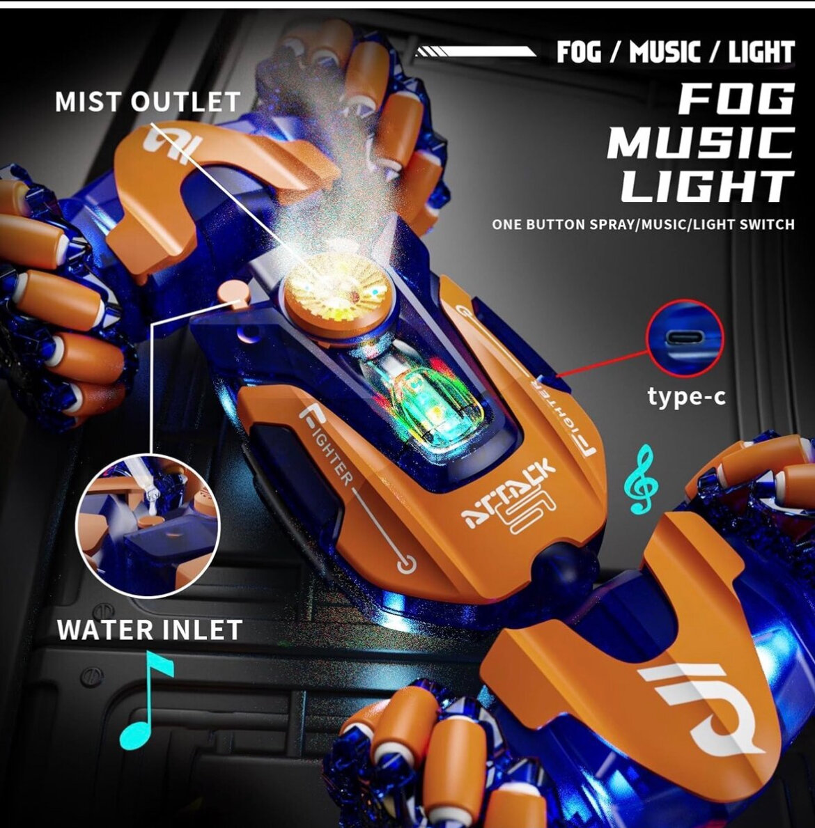 Découvrez une expérience de conduite unique avec cette voiture télécommandée à 360°, équipée de lumières LED, musique et nébulisation. Parfaite pour toute surface - sable, herbe, route et gravier. Idéale pour les enfants et les amateurs de gadgets innovants. Offrez du divertissement ultime avec son design futuriste et ses fonctionnalités captivantes!