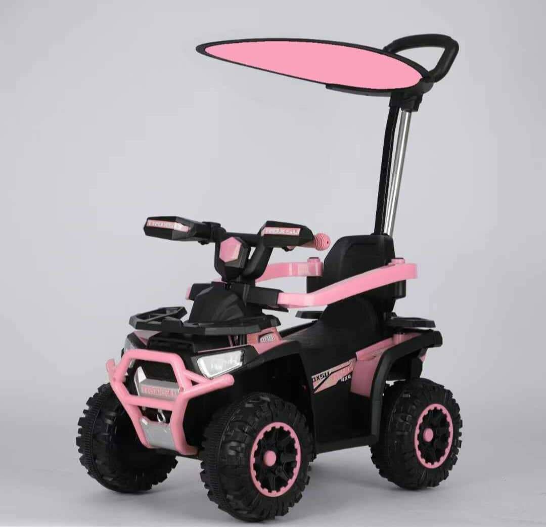 Voiturette tout-terrain pour enfants avec guidon et pare-soleil. Idéale pour des aventures sécurisées et amusantes en plein air. Design robuste et élégant, parfait pour stimuler l'imagination des petits. Confort et sécurité garantis avec un siège ergonomique.