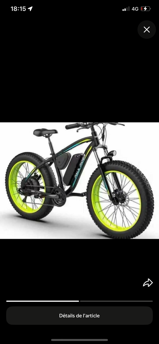 Découvrez l'aventure avec ce VTT électrique Fat Bike robuste, idéal pour tous les terrains. Ses pneus larges assurent une excellente stabilité et adhérence, même sur les surfaces les plus difficiles. Équipé d'une puissante batterie pour de longs trajets sans effort. Parfait pour les amateurs de plein air et de sensations fortes.
