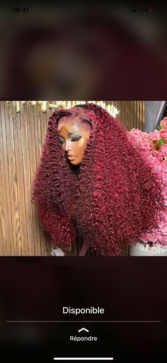 Perruque Bouclée Rouge Bordeau