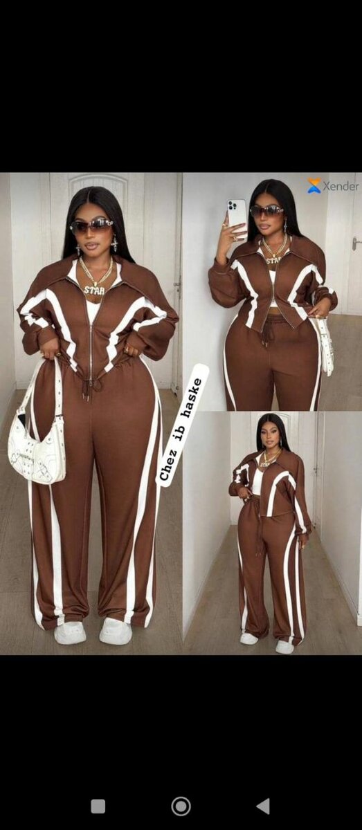 Elevate your casual wardrobe with this stylish brown tracksuit set, featuring a zip-up jacket and matching pants with white stripes.
