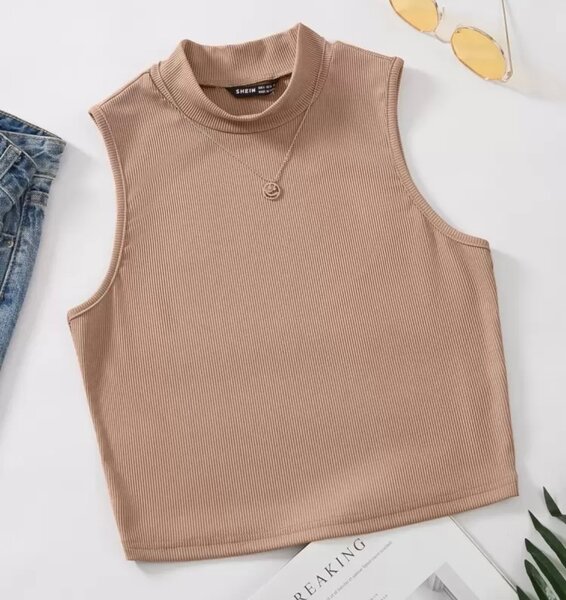 Stylish women’s sleeveless knit top in mustard yellow. Modern, comfortable, and perfect for hot days or layering in any season. A trendy versatile top that adds a pop of color to any outfit.