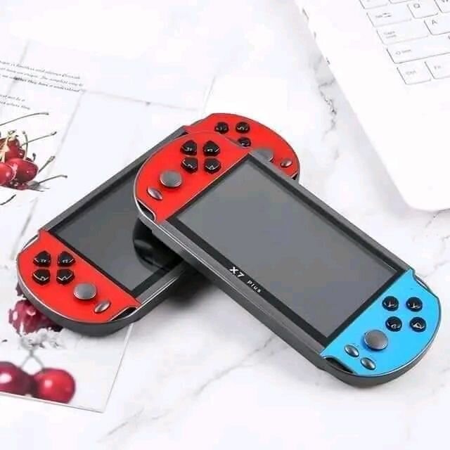 Découvrez la X7 Game Console, une console de jeu portable élégante avec des coques interchangeables rouges et bleues. Parfaite pour les amateurs de jeux vidéo en déplacement. Compacte, légère et facile à utiliser.