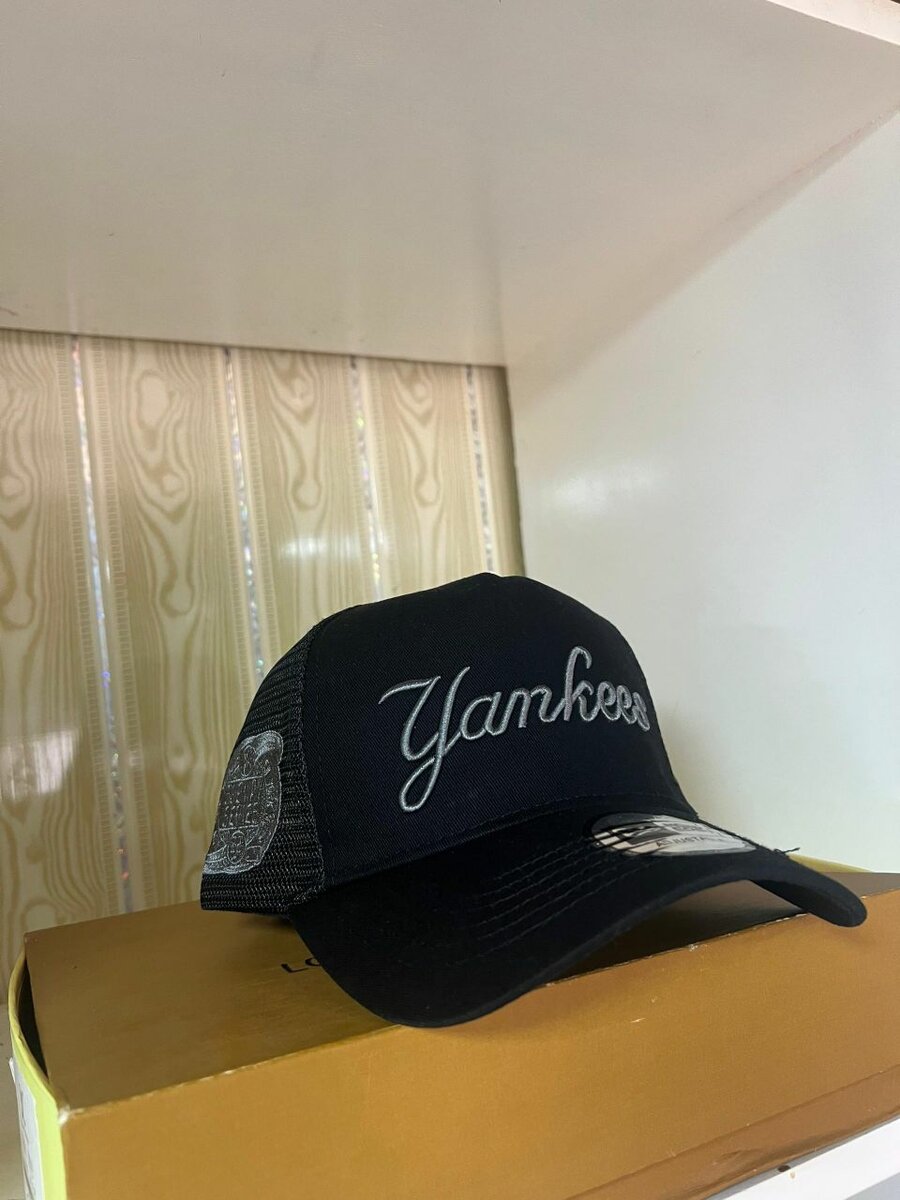 Stay stylish and cool with this Yankees black trucker cap. Featuring a breathable mesh design and bold embroidery, it's perfect for daily wear or outdoor activities. A must-have for baseball fans and fashion enthusiasts alike.