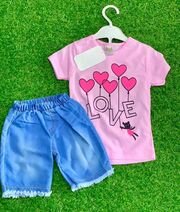 t-shirt imprimé et short en Jean-rose