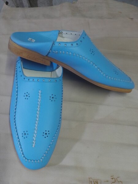 Mules en cuir bleu confort