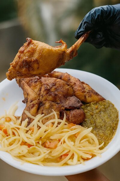 Lapin braisé avec attieké
