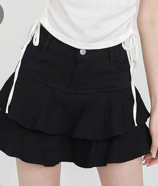 Jupe Courte Noire à Volants