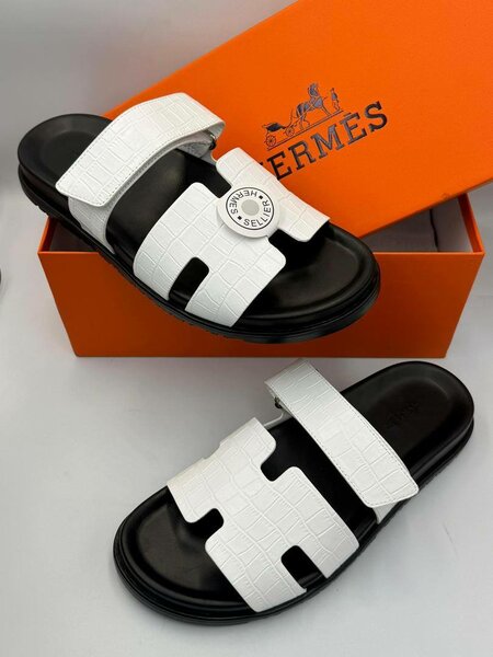 Hermes slippers available in brown, white, multicolored