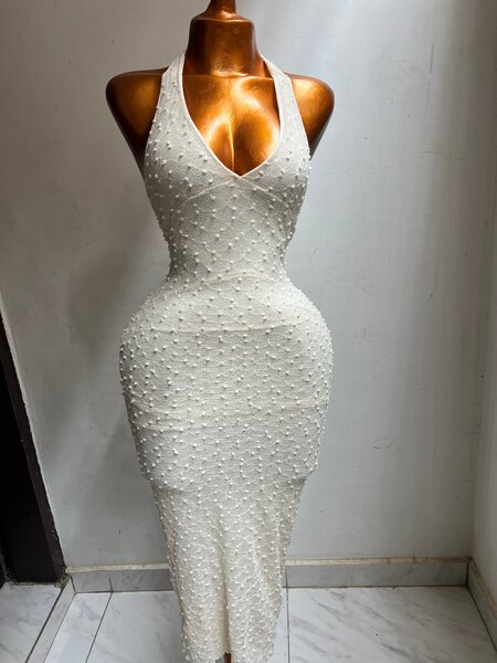 Robe élégante dos nu perlée