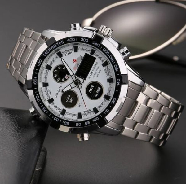Montre étanche Pour Homme, De Luxe, En Acier Argenté, Numérique, à Quartz, Analogique
