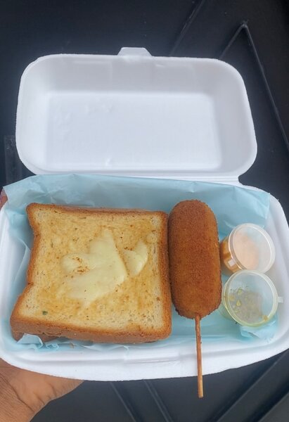 Croque monsieur plus corn Dog
