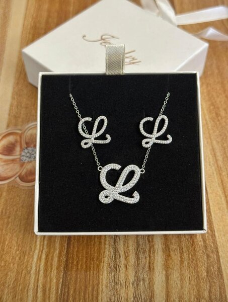 Ensemble collier et boucles d'oreilles lettre L en argent