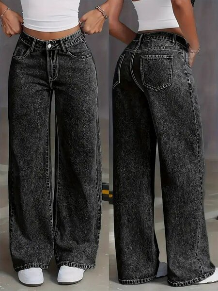 Jean large noir délavé pour femme