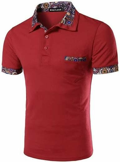Polo homme rouge col motif wax