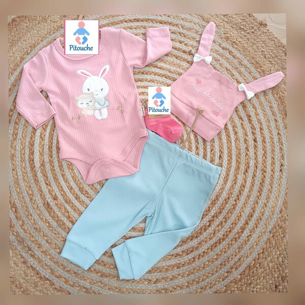 Lot de 3 pièces enfant rose-bleu : veste, pantalon et bonnet