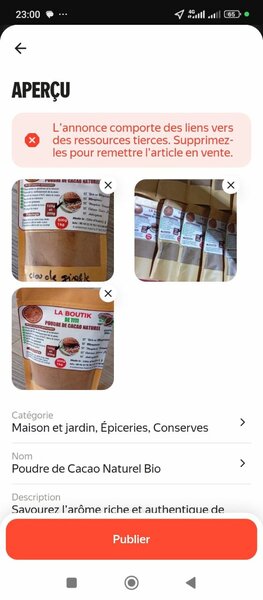 vente de poudre de cacao bio 💯 naturelle et divers articles